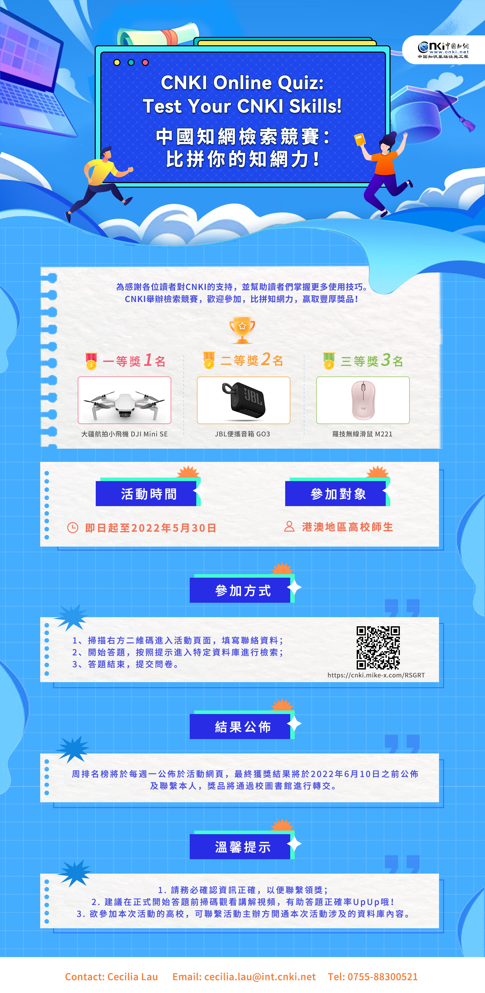 為感謝各位讀者對CNKI的支持,並幫助讀者們掌握更多使用技巧。CNKI舉辦檢索競賽,歡迎參加,比拼知網力,贏取豐厚獎品!