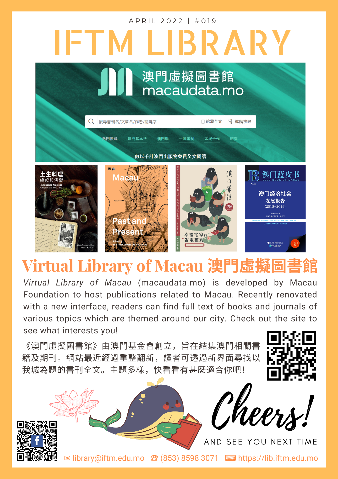 In April’s edition of Monthly News, we would like to highlight Virtual Library of Macau which has recently got a fabulous makeover.