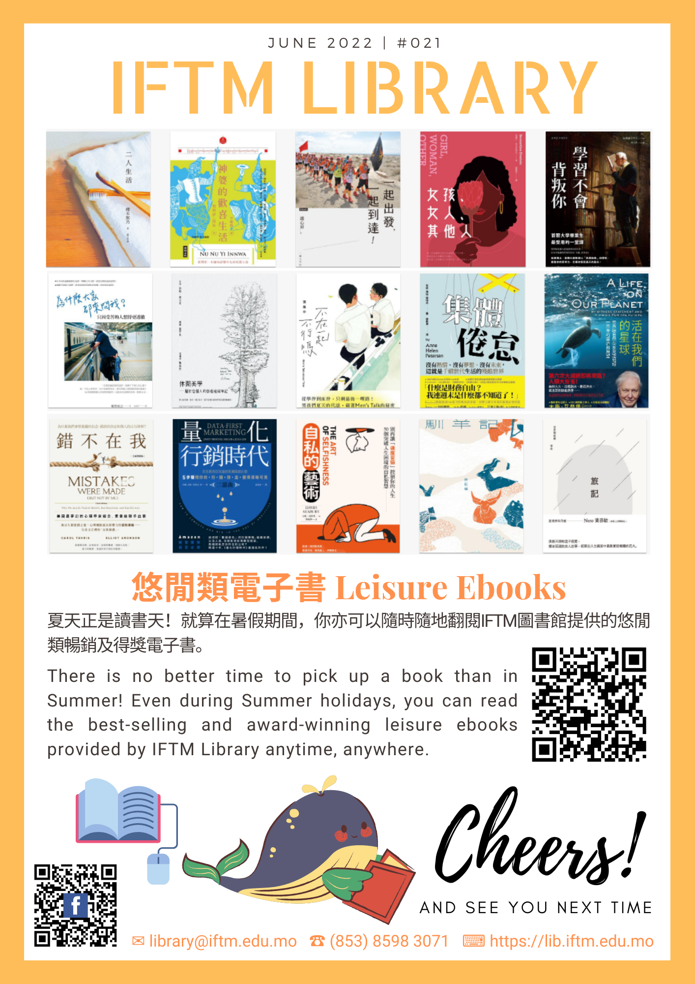 There is no better time to pick up a book than in Summer! Even during Summer holidays, you can read the best-selling and award-winning leisure ebooks provided by IFTM Library anytime, anywhere.