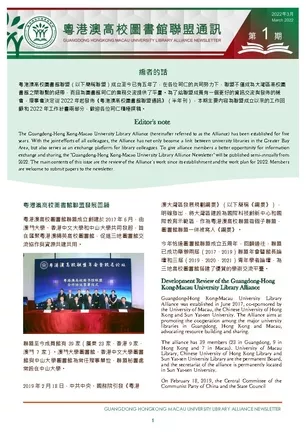The first issue of "Guangdong-Hong Kong-Macao University Libraries Alliance Newsletter" jointly edited by the University of Macau Library, Sun Yat-sen University Library and the Chinese University of Hong Kong Library was officially released on April...